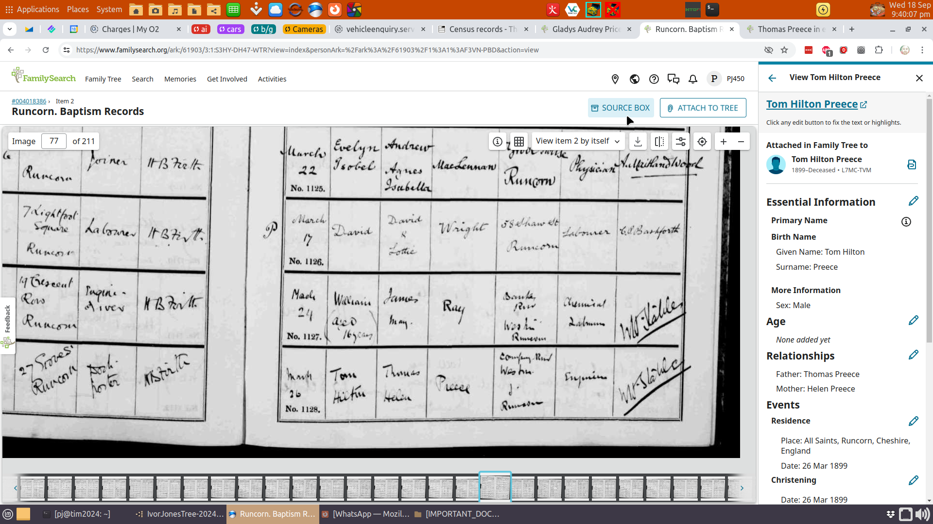 Christening, Thomas (Tom) Hilton (Pop) Preece